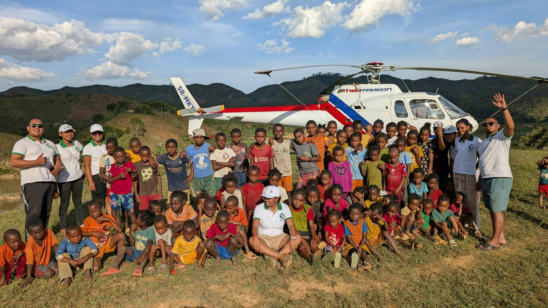 Un déplacement en hélicoptère a été effectué vers une zone extrêmement enclavée grâce au précieux soutien de notre partenaire Real Mission Madagascar.